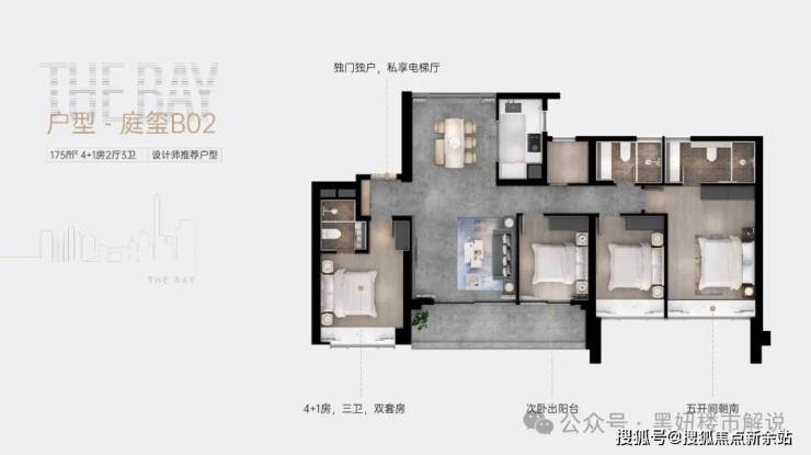 175㎡4+1 房两厅三卫:大尺度空间布局,4+1 房设计灵活满足多人口家庭需求,主卧配备独立卫浴与衣帽间,部分户型可俯瞰香港米埔湿地公园,视野极佳,彰显高端居住品质。
