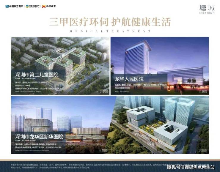 集萃深圳市新华医院(在建中)、龙华人民医院、深圳市第二儿童医院(在建中)、广州医科大附属医院(规划中)等市属公立三甲医院高标准医疗服务体系,护航健康生活。