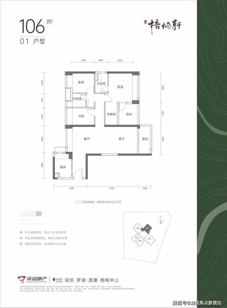 京基云景梧桐二期新作,高端纯粹住区,2.84超低容积率,2梯7户舒适梯户比,罗湖少有约1:1车位比,社区配套台地泳池和半山私家花园。