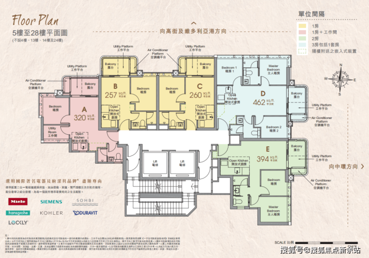 【户型】:项目一共提供111伙单位,涵盖1至3房(包括平台单位以及天台特色户),实用面积221至774平方呎。
