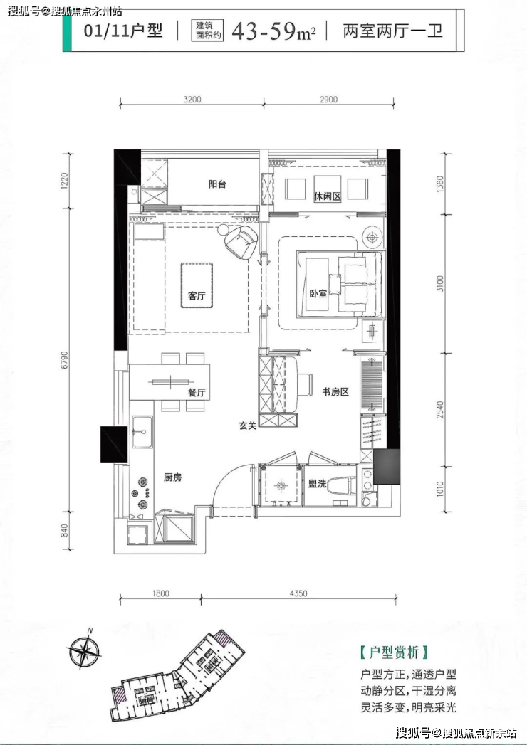 他透露,拥有绝佳使用率、建面约42㎡的住宅房源,预计总价要在4字头。几乎都超过100%,其中42㎡的户型更是近130%,以至于不仅做了两房,连次卧都有8个平方。