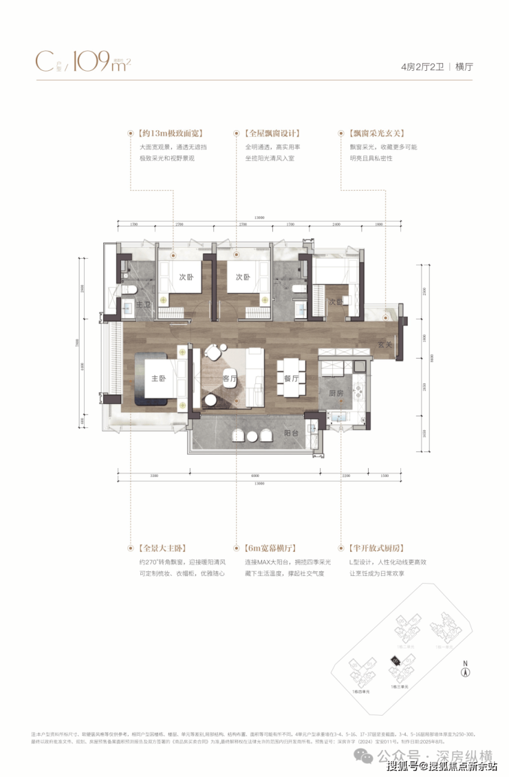 【产品面积】建面约108㎡/109㎡/138㎡~143m²海幕纯四房