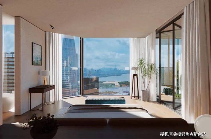 超高层观景面采用落地玻璃,深圳湾视野开阔,无需阳台即可观赏海景。