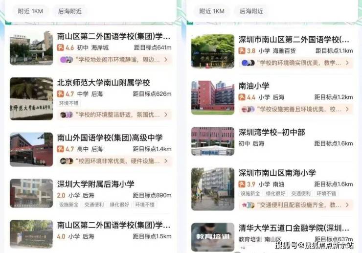 项目周边有北师大附小,南山外国语学府学校,南二外学府中心南油小学,深圳大学附属后海学校,北师范大学附中,深圳湾学校等。根据南山学区划分图,在深圳湾学校的学区范围内。