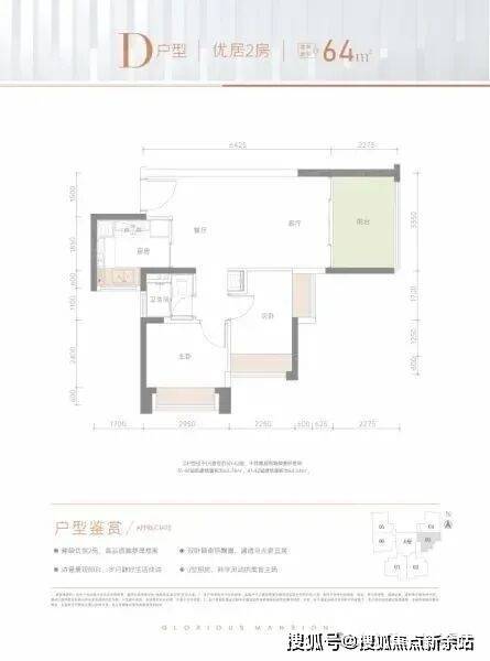 项目户型还是很不错的,户型方正,使用率高,64㎡做两房,80㎡做三房,64平米小两房户型是片区稍有的两房产品,总价低,适合刚需客户。