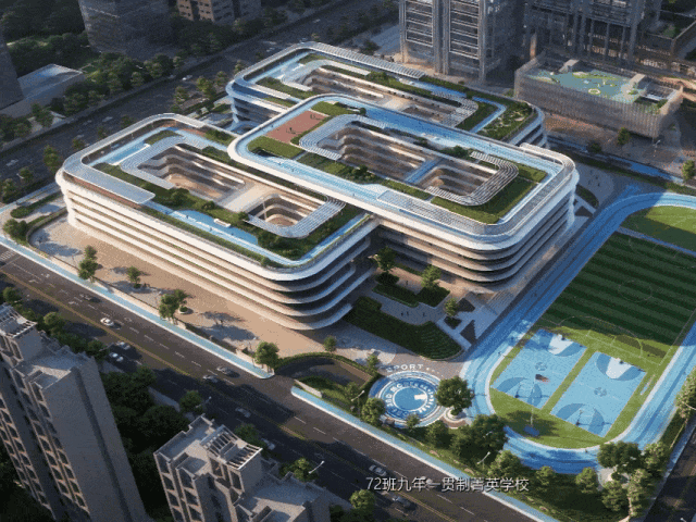 红岭教育集团红树林校区(直属)由世界十大建筑事务所之一AEDAS 设计,三个连环相扣设计造型,寓意环环相扣、不断学习的过程。屋顶农场、屋顶跑道、立体运动场地等空间的存在与英美高端学府的“开放式素质教育”有异曲同工之妙