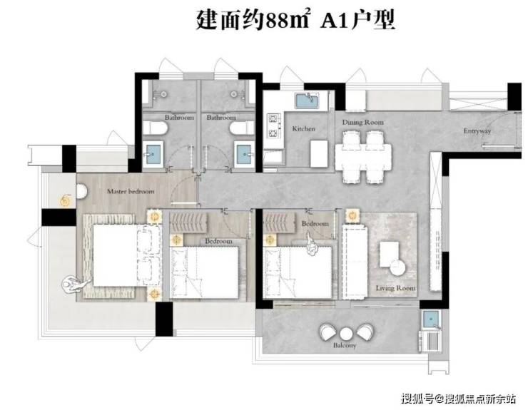 产品以主打刚需,有88㎡、98㎡、108㎡三至四房