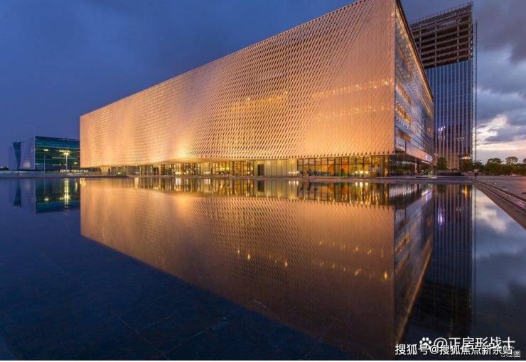 项目外立面采用玻璃幕墙与金属线条交织的构成手法,银灰色铝板在阳光下泛着珍珠般光泽,搭配香槟金色装饰构件,形成极具辨识度的建筑表情。屋顶造型汲取传统中式飞檐的神韵,通过现代解构手法演绎出层层递进的立体轮廓,夜幕降临时,内嵌式灯光系统勾勒出建筑柔美的天际线,宛如都市中熠熠生辉的艺术装置。