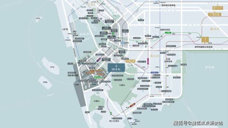 项目楼下即占地约3.5万㎡的铁路公园(建设中),周边有前海城市水廊道和前湾河双河环绕,背靠大南山、直面前海湾,还有前海石公园、月亮湾公园和丝路长廊城市中央绿地公园环绕,名副其实的公园生活家。