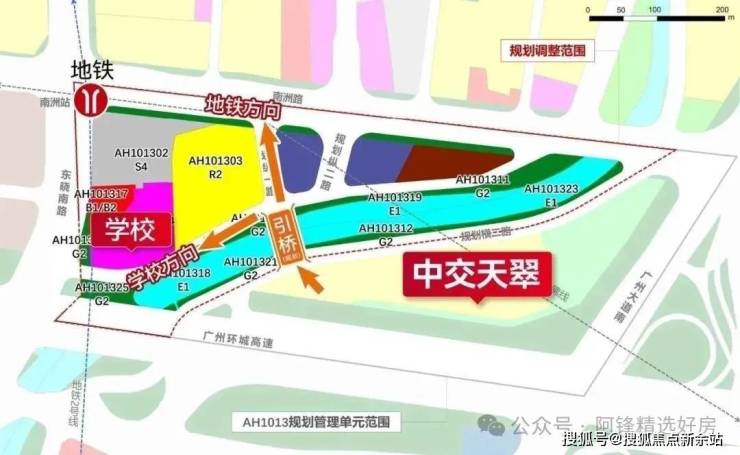 项目自身只配建了一所9班的幼儿园,没有小学,隔壁馥香园配建了24班的小学,并且已经官宣引入广州五中附属实验小学,按照控规文件显示,学校对应的AH101324地块,距项目仅约300米距离,符合小学生居住地与学校距离3公里内的就近入学原则。