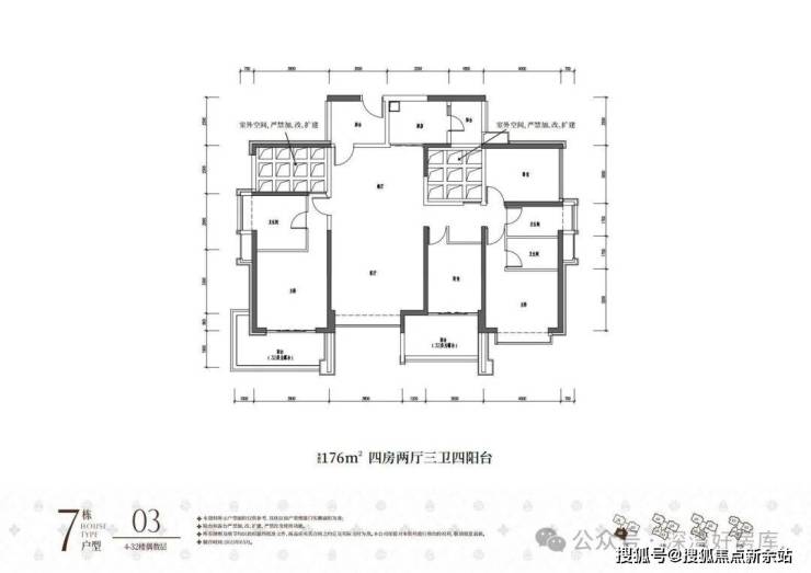 ①高阔奢享:建面约86-176㎡墅境宽宅,改善型大四房,全南向户型天然舒适;两梯三户低梯户比,多阳台露台设计,悦享阔绰居住空间;方正户型结构搭载更多半开放设计,高阔空间实用率与灵活性大幅提升。