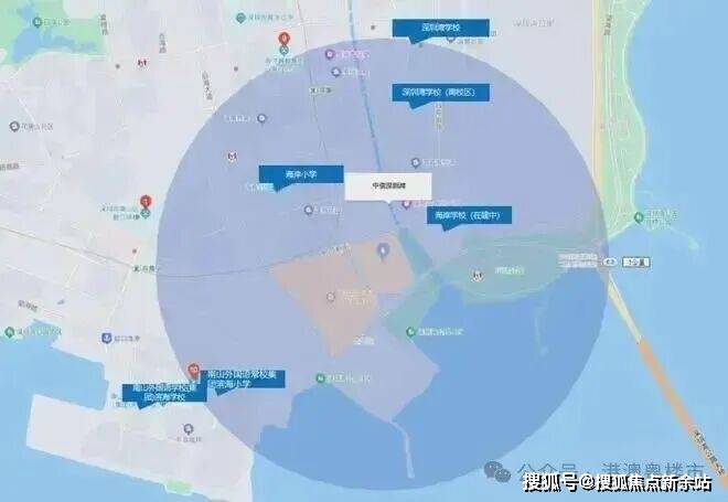 其中距离最近的是海岸学校(约307米),办学规模为54班(小学36班、初中18班)、2520个学位,据传可能是南二外集团旗下学校(具体以实际为准)。