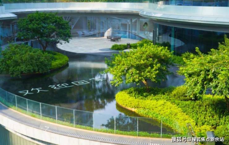 流水、瀑布等景观的营造,消弭了珠江与建筑的边界。让人步入小区中,也仿佛能听到珠江水的流动,瞬间忘却外部的喧嚣,投入自然的环抱。