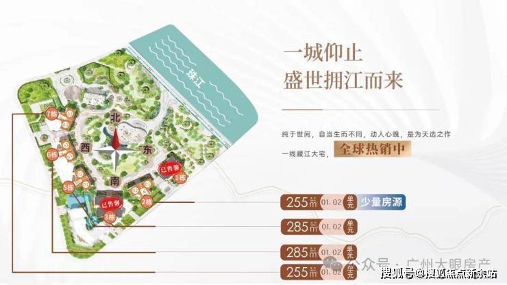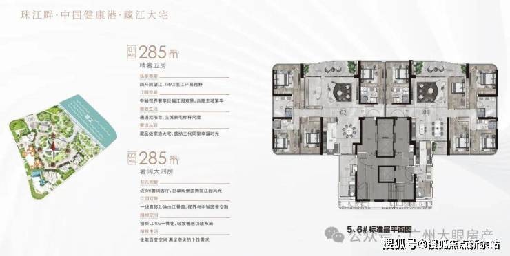 户型:建面约233-285㎡四至五房,东向/东南向一线望江,极致3.4-3.6m层高