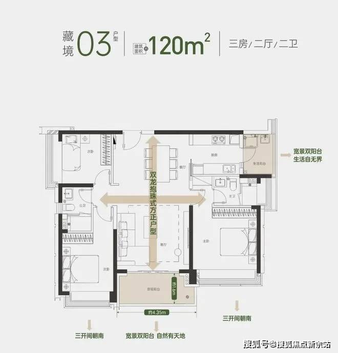建面约 120 ㎡ 02户型 3房2厅2卫