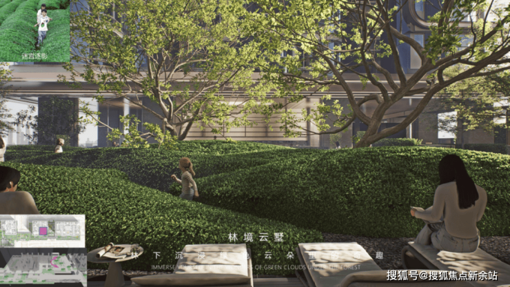 以“空中院馆”为设计理念链接自然,营造酒店式的生活体验。通过风雨连廊联动四季庭院,实现室内外功能整合。园区结构由极核中庭、生活美学庭院、礼序花园玄关和景观泳池组成,核心元素包括林下客厅、秘密花园及浅丘秘境,并利用空中花园打造观景廊亭,增强城市视野。