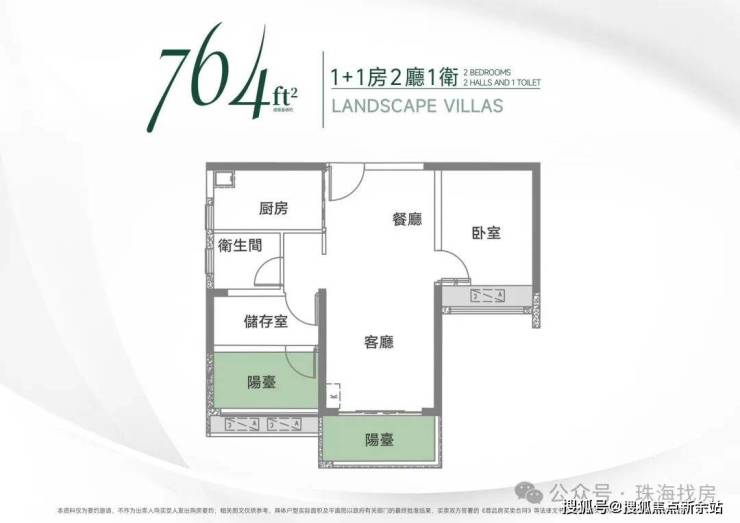 建面約71㎡(764ft²) 1➕1房2廳1衛