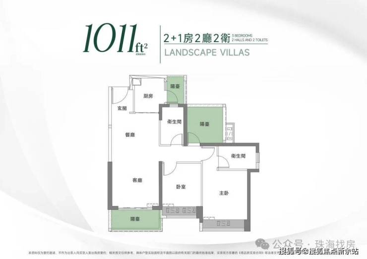 建面約99㎡(1065ft²) 2➕1房2廳2衛