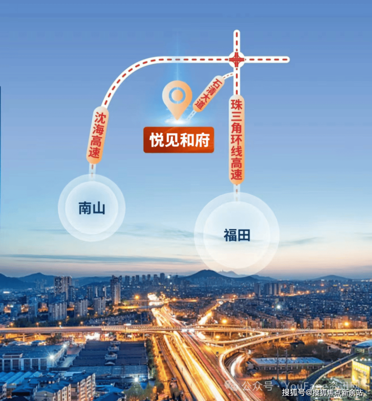 直线距离约1.2Km上高速畅行福田、南山半小时都市圈