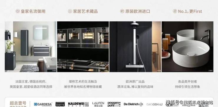 全屋精装引入诸多全球一流品牌,功能性的满足外,更看见德国皇帝、奥地利女王、超星级酒店的同等选择,世界各地知名博物馆的收藏品牌。