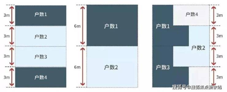 左侧为平层,中间为传统复式,右侧为咬合式复式