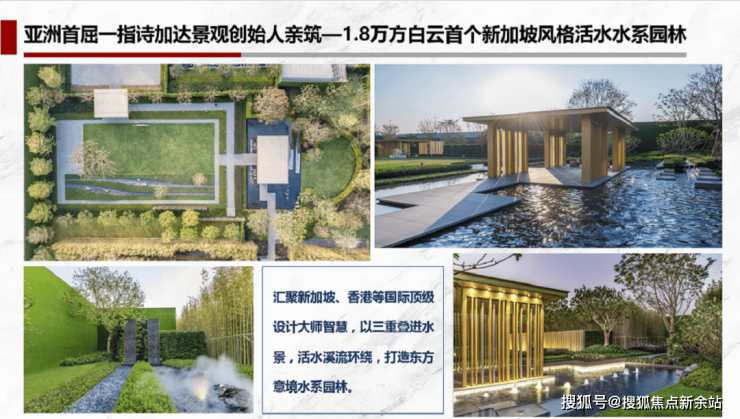 项目属于纯改善型,小区园林是其核心卖点之一,由新加坡标杆园林设计公司诗佳达打造,由世界顶级景观设计公司——CICADA景观设计事务所设计!