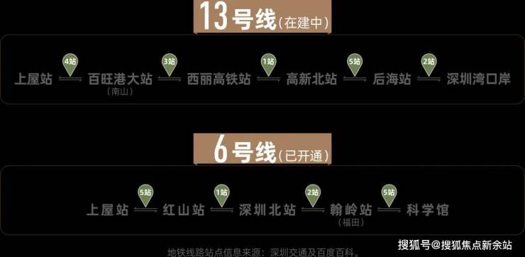 13号线据深圳交通局官网称将在2025年年底开通,该线路也是深圳3条快线之一,号称“深圳科技核心大动脉”,从南到北,串联深圳湾总部基地、后海中心、南山科技园、西丽高铁枢纽、留仙洞总部基地、白芒科研机构、宝安石岩科创城等多个重要片区。沿线华为、中国电子、腾讯、阿里等500强汇集,大批高新人才聚集,形成科创阵地,势必引领片区经济崛起。全程时速120公里,4站到南山百旺港大站,7站到南山西丽高铁站,8站到高新北。