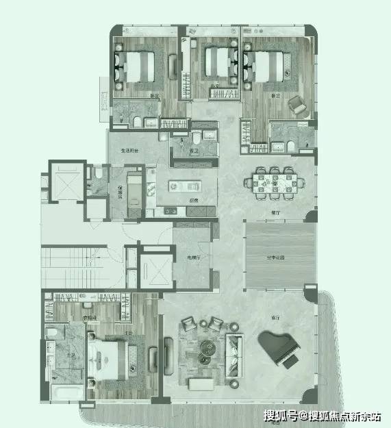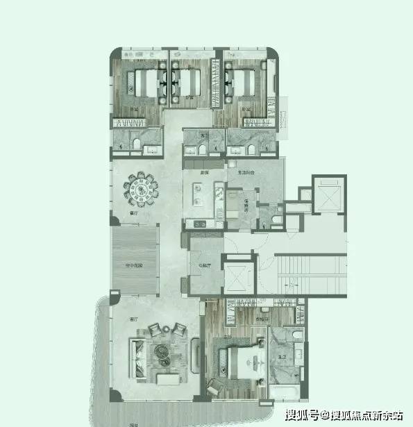 约130㎡玄关厅厨一体,社交面积在整个户型中占比高达35%,配合完美LOW-E镀膜落地玻璃,国际级大宅气场油然而生。