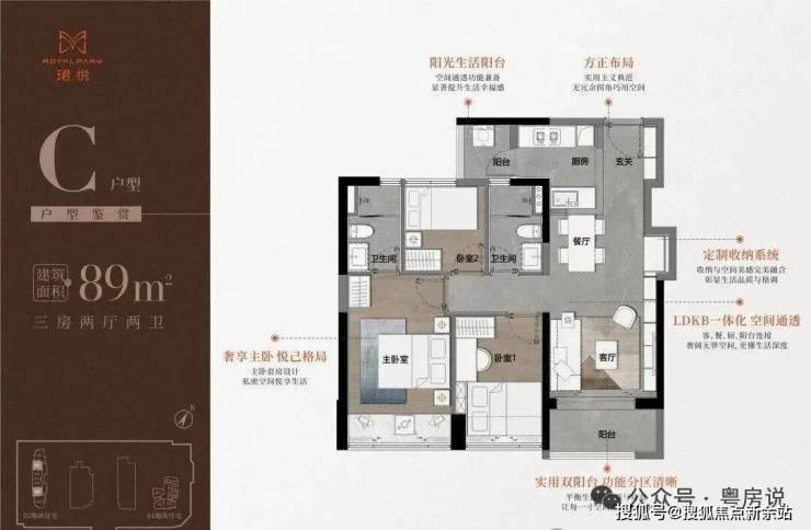 A户型:大阳台,主卧通过凸窗赠送衣柜,但次卧尺度都偏小,越过家居建材市场看向中粮大悦城写字楼,视野开阔
