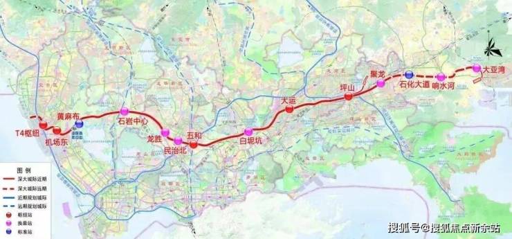 深大城际:该线路起自宝安机场T4站,途径宝安区、龙华区、龙岗区,最终至坪山区聚龙站,全线长69.2公里,设计时速160公里,从坪山-机场仅需40分钟,全线地下敷设11个站点,分别是T4枢纽、机场东、黄麻布、石岩中心、龙胜、民治北、五和、白泥坑、大运、坪山、聚龙,另外预留惠州3个站点。