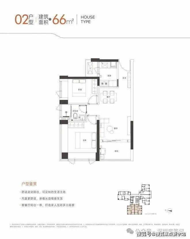 02.03户,约66㎡2房1卫