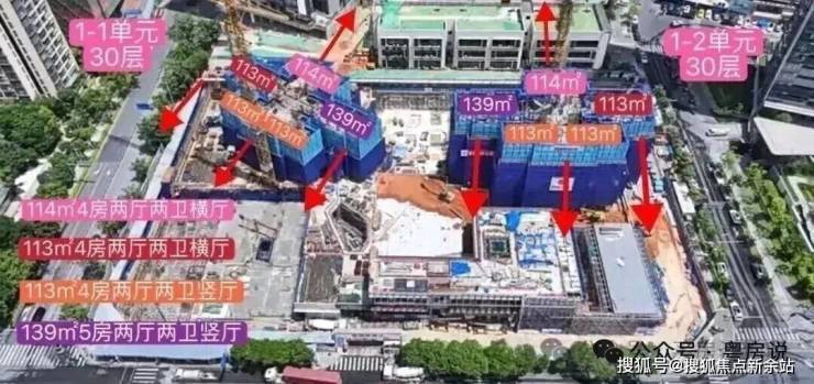 整体以朝南及西南为主,有两套114㎡朝东北面向金众。