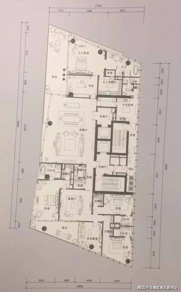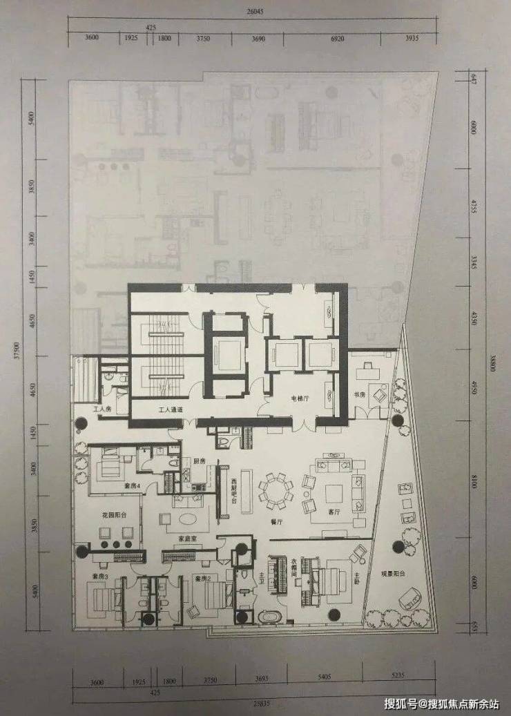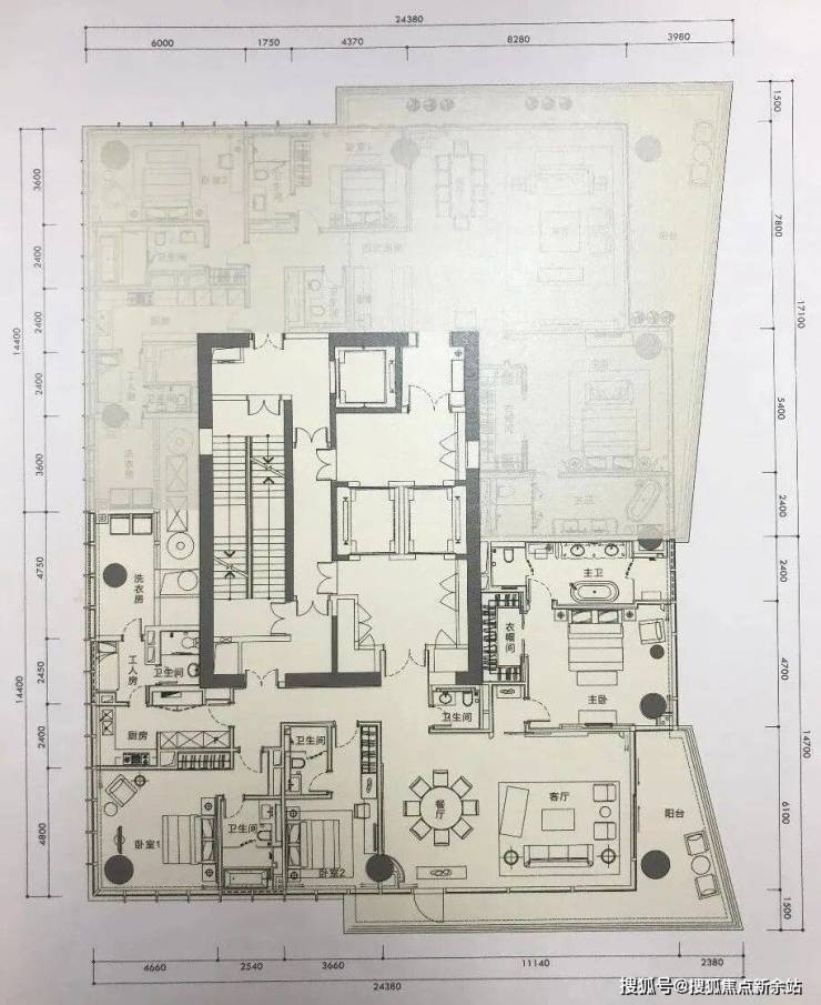 酒店式公寓,每层7户:414平朝东,394平朝东北,320平朝西南,258平朝西北,130平朝西,94平朝西。