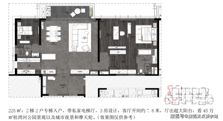 精装公寓:94㎡一房单价6万起,132㎡两房单价7万起仅9套,225㎡三房单价8.5万起仅2套。