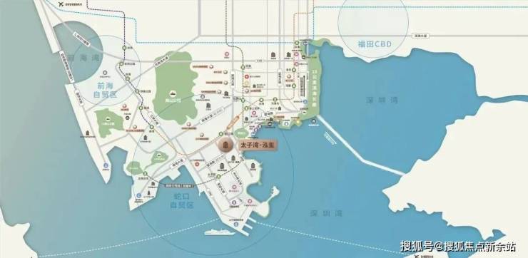 太子湾片区规划总建筑面积约170万㎡,总占地约69万㎡,汇集办公、居住、商业、艺术中心、酒店等多元业态。以“一湾三坊城中城”概念打造布局,在独一无二的太子湾滨海区,汲取山、海、城三大元素,构建高端“居住坊”、“商业坊”、“港务坊”。凭借独树一帜的规划与强大的枢纽功能,成就高端元素集萃纷呈的“城中之城。