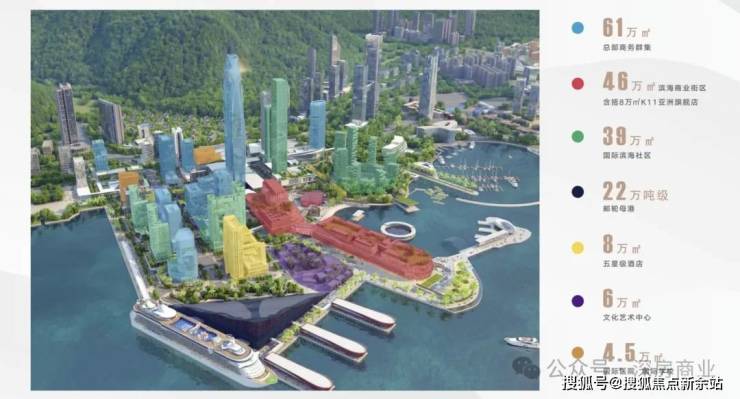 鼎级配套:约170万m²未来之城(约61万m²商务集群,含约380m超高塔尖商务总部+约46万m²滨海商业,含K11亚洲旗舰商业体、D-park等+约39万m²国际滨海社区+6万m²文化艺术中心+约8万m²五星级酒店+约4.5万m²太子湾国际学校、国际医院),一湾三坊城中城,滨海生活时代领地。