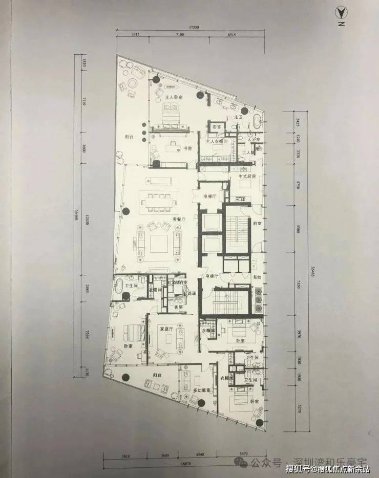 优点:3.45米极限层高,主卧双向景观面,静谧书房及6米客厅开间,餐客一体。