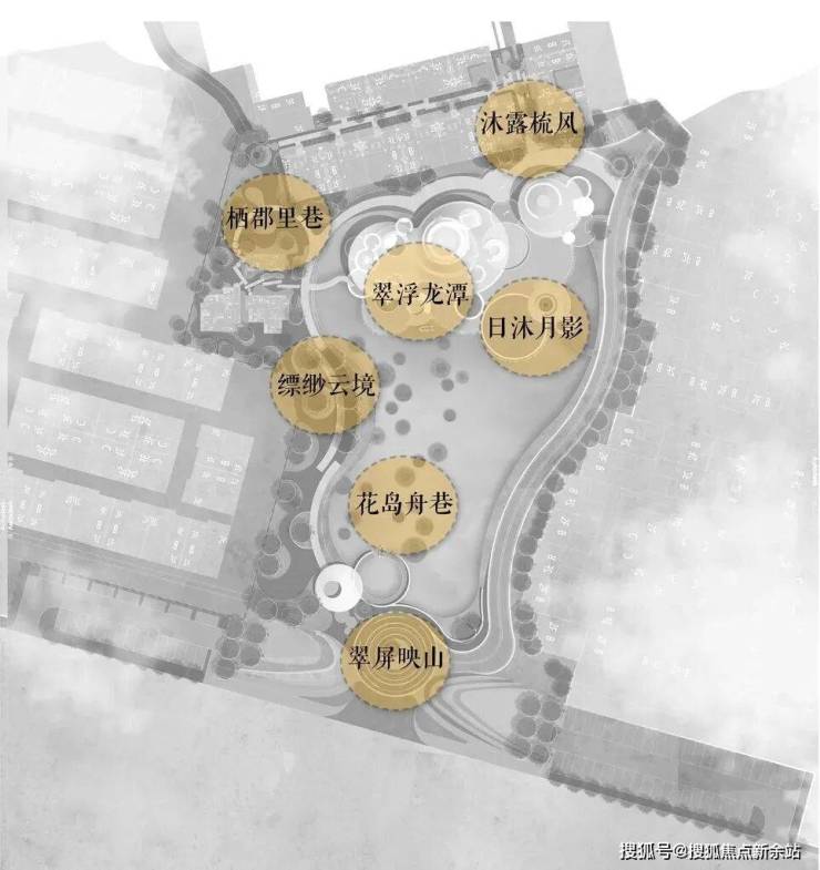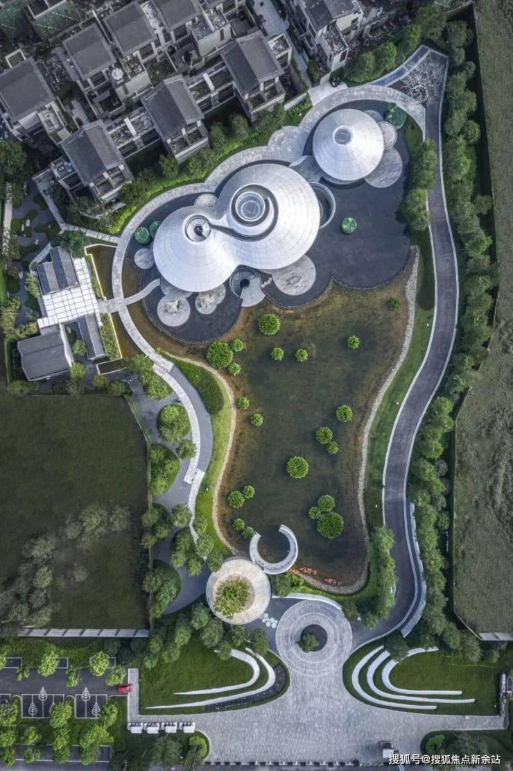 在水景的营造上,为了突出池水整体通透清澈的感觉,自然种植在区域内点缀搭配,颇有自然山林之感,透露儒雅的气息,呈现出理想中的美感。