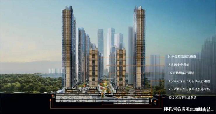 创新打造地上地下六重结构立体化交通系统,不同交通系统分层互联,人行系统、城市公共道路系统,地下轨交系统快速接驳,最大程度实现人车分流,科学化疏解交通压力。