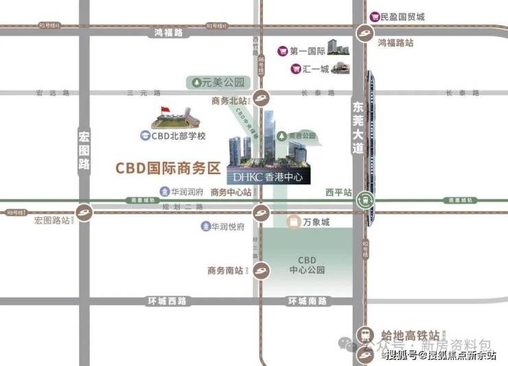 【区域】香港中心位于湾区都心—东莞国际商务区(东莞CBD),规划结构为“一心两轴四组团”,是东莞未来十年政府重点打造的最核心、最醇熟的中心区位,比肩深圳湾。项目旁边即为CBD北部学校、华润万象城、CBD中心公园、华润置地中心、莞商大厦等。预计将于 2030年、2035年全部建成,这里将是东莞的“珠江新城”和“福田CBD”。