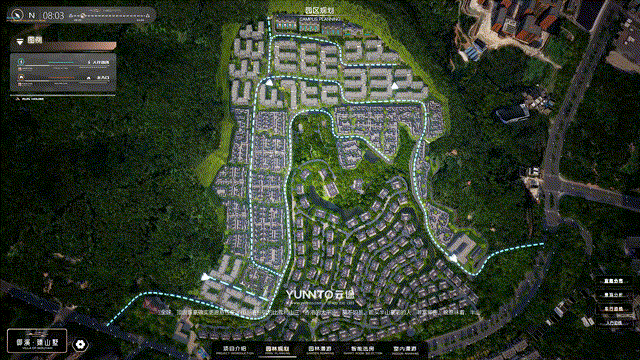 依托项目独特的半山地形与岭南水韵,汲取云南苍山“十九峰十八溪”的天然意境,打造17条逐溪蜿蜒水线和13条林隐通幽山径,