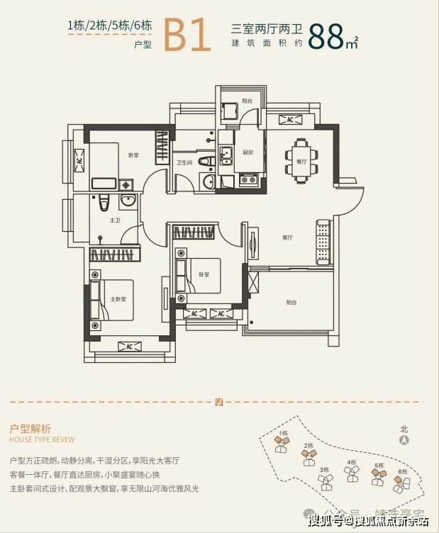 楼栋:项目共6栋,其中1/2/3/4/5栋22层,6栋19层