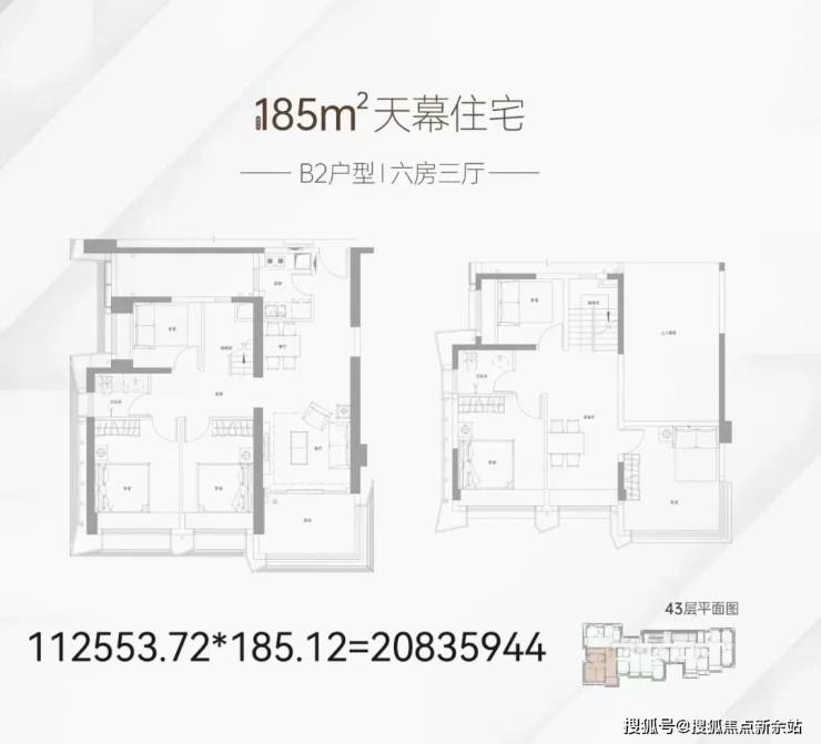 B户型,185.12平米,备案单价:112553.72元/平米,总价20835944元(六房可改11房,加建费另算)
