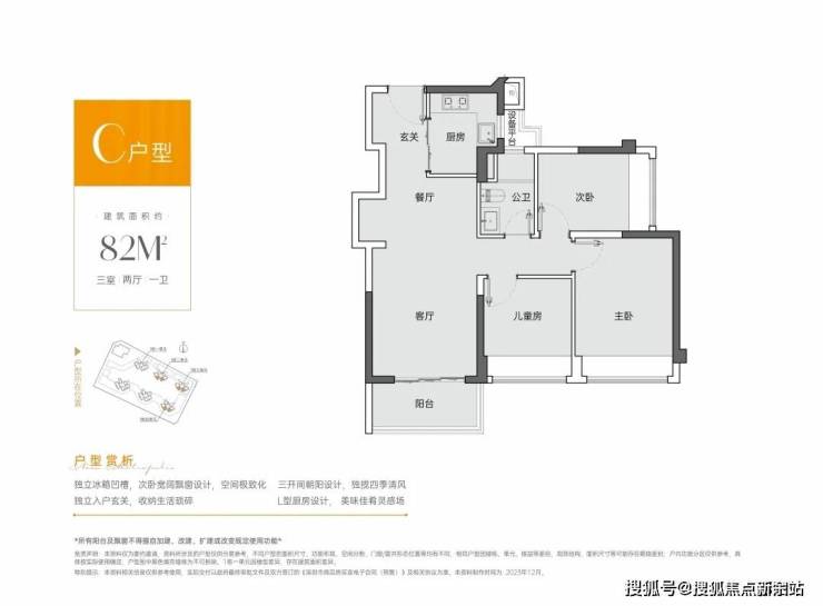 独立冰箱凹槽,宽阔飘窗设计,空间极致化