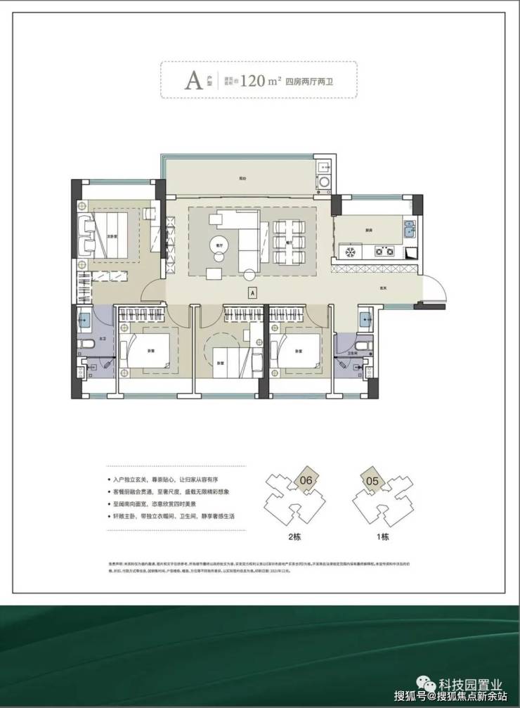 面积为75-120㎡三至四房,使用率超80%,高赠送,三开间朝南。