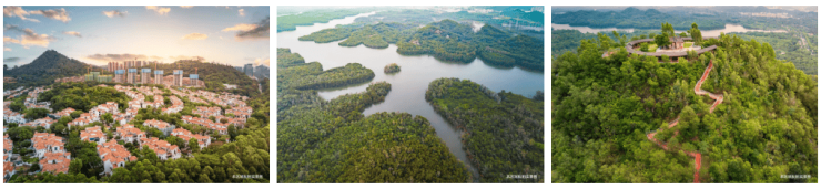坐拥6山2水4公园,推窗见景,坐落在森林面积约632公顷尖岗山公园下,森林面积≈300个香蜜湖+5个莲花山。