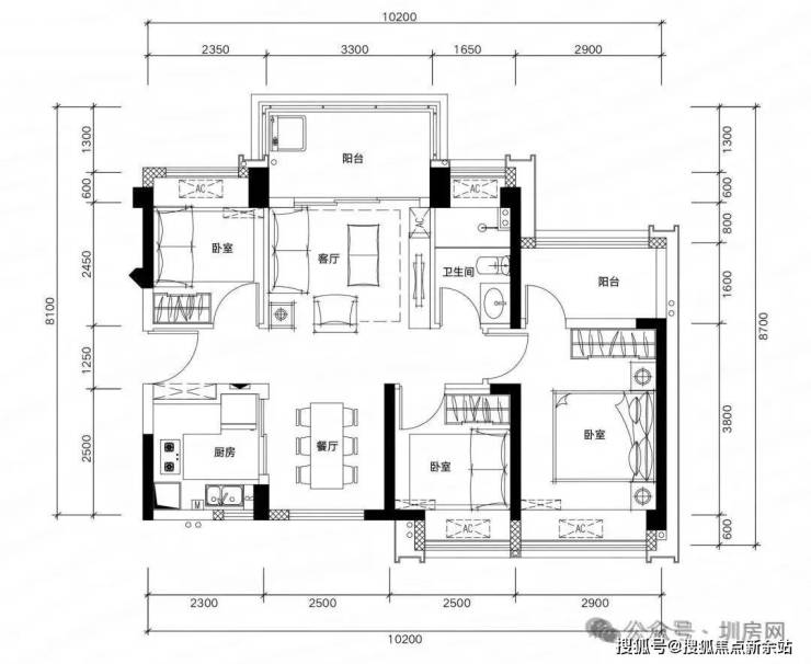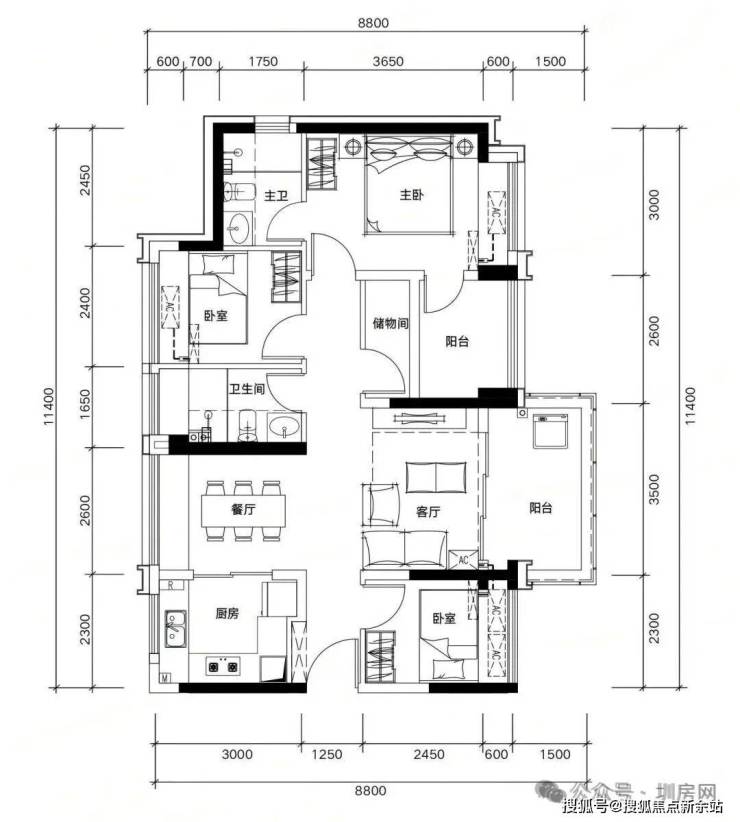 81㎡三房两厅两卫,空间利用极致,功能齐全。