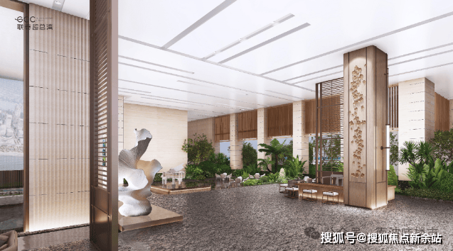 ❏艺术园林与建筑立面相辉映,以“无界绿洲 艺术造景”的理念将自然、艺术与生活场景融为一体。特邀艺术大师曾振伟担任艺术顾问,整体规划社区艺术氛围,通过雕塑、空间与光影的精心布局,打造具有归属感与仪式感的艺术园林,让每一处景致,皆成为生活的诗意图景。