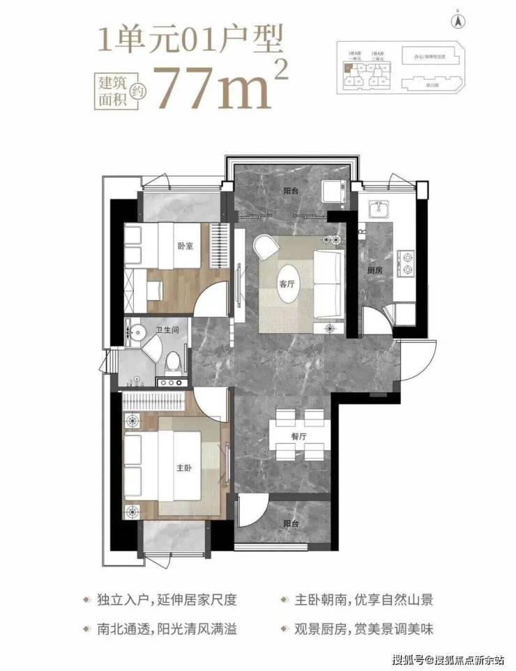 建面约77㎡的2+1房总价只要386-391万,算下来首付约60万就能拿下;