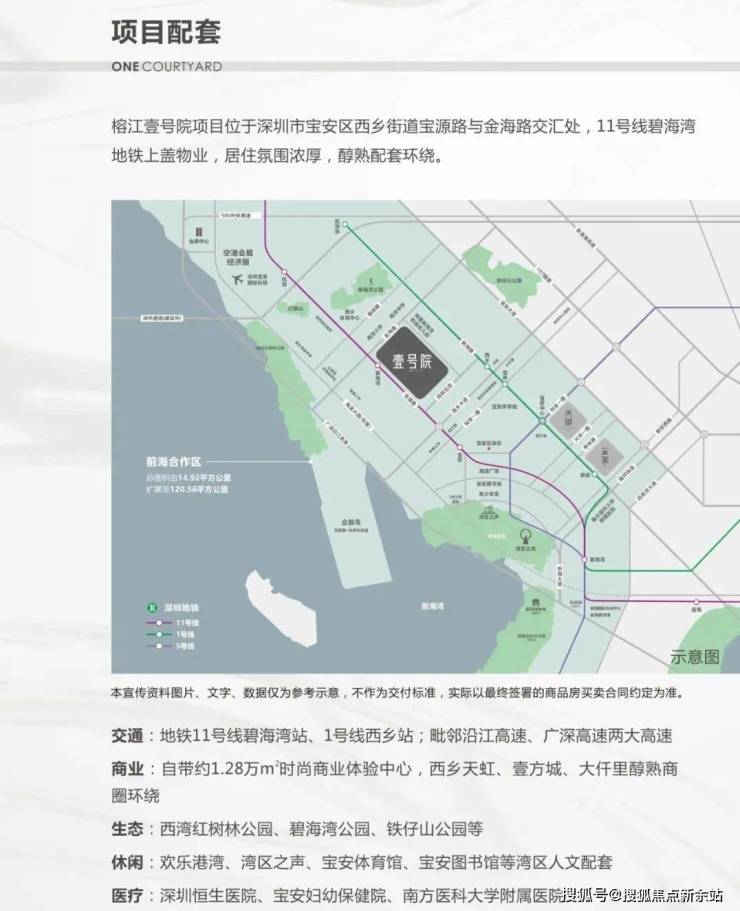 项目属于11号线碧海湾地铁上盖物业。与11号线碧海湾站无缝接驳。同时项目临近1号线地铁西乡站,属于双地铁辐射物业。乘坐11号线一站可达宝安中心,两站可达前海湾枢纽站换乘1/5号线。